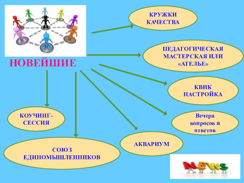 НОВЕЙШИЕКРУЖКИ КАЧЕСТВАПЕДАГОГИЧЕСКАЯ МАСТЕРСКАЯ ИЛИ «АТЕЛЬЕ»СОЮЗ ЕДИНОМЫШЛЕННИКОВКОУЧИНГ-СЕССИЯКВИК НАСТРОЙКААКВАРИУМВечера вопросов и ответов