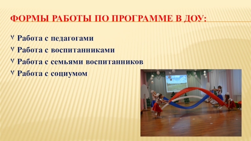 Слайд 8Формы работы по программе «Крымский веночек» с детьми