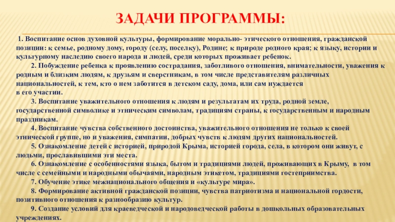 6. Ознакомление с особенностями языка, бытом и традициями людей, проживающих в Крыму, в том числе с семейными и народными обычаями, народным этикетом, традициями гостеприимства.