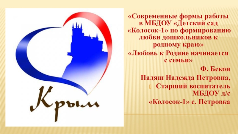 Слайд 1«Современные формы работы в МБДОУ «Детский сад «Колосок-1» по формированию любви