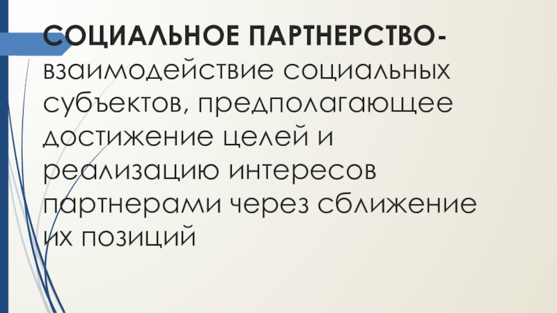Слайд 2СОЦИАЛЬНОЕ ПАРТНЕРСТВО- взаимодействие социальных субъектов, предполагающее достижение целей и реализацию интересов