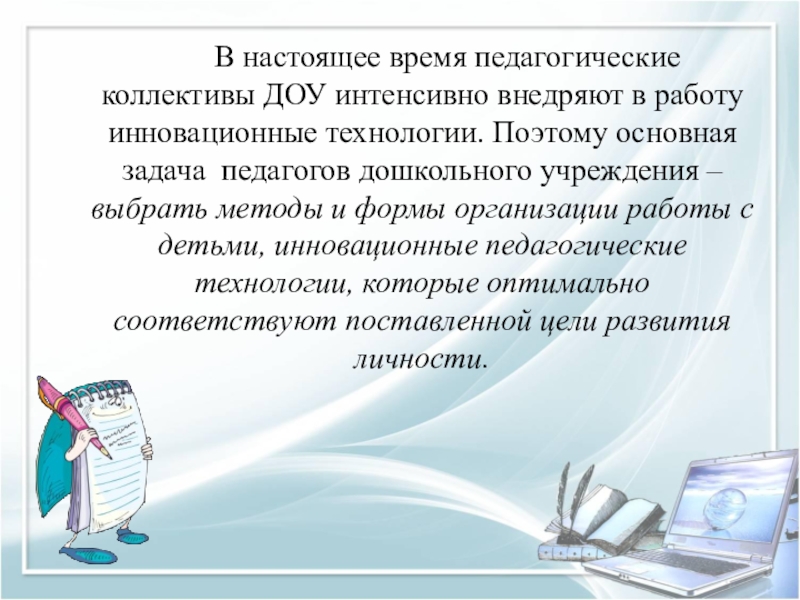 Слайд 2 В настоящее время педагогические коллективы ДОУ интенсивно внедряют в работу инновационные