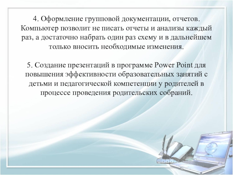Слайд 204. Оформление групповой документации, отчетов. Компьютер позволит не писать отчеты и