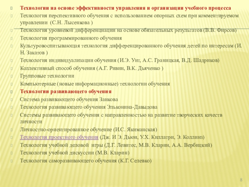 Слайд 8Технологии на основе эффективности управления и организации учебного процесса