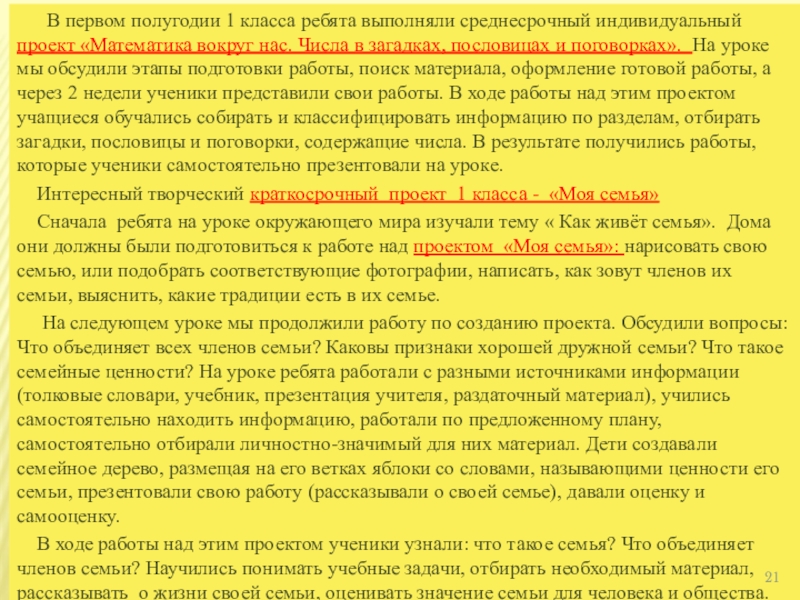 Слайд 21 В первом полугодии 1 класса ребята выполняли среднесрочный