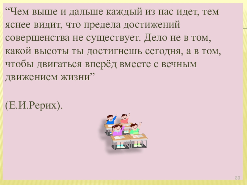 Слайд 30“Чем выше и дальше каждый из нас идет, тем яснее видит,