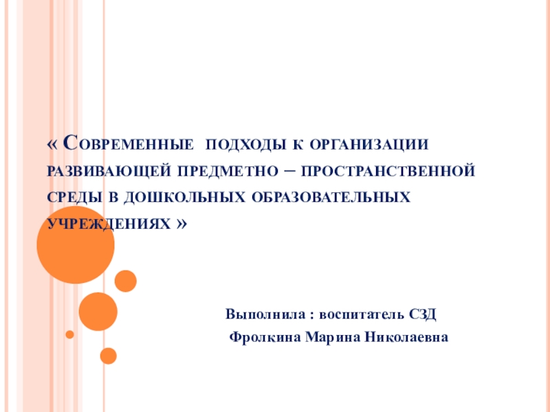 Слайд 1« Cовременные подходы к организации развивающей предметно – пространственной среды в