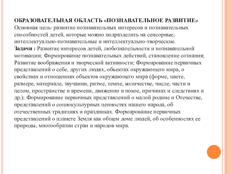 Слайд 3ОБРАЗОВАТЕЛЬНАЯ ОБЛАСТЬ «ПОЗНАВАТЕЛЬНОЕ РАЗВИТИЕ» Основная цель: развитие познавательных интересов и познавательных