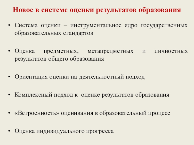 Слайд 4Новое в системе оценки результатов образования