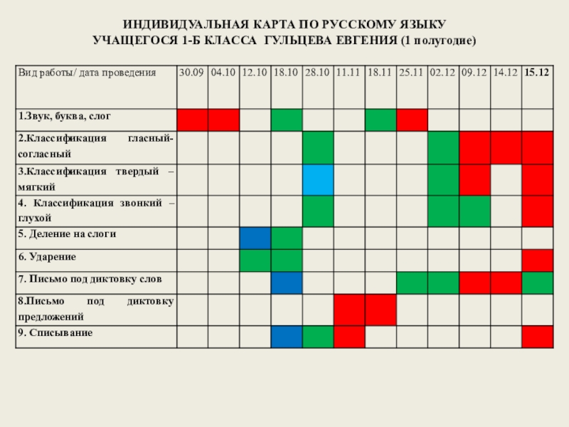 Слайд 26ИНДИВИДУАЛЬНАЯ КАРТА ПО РУССКОМУ ЯЗЫКУ