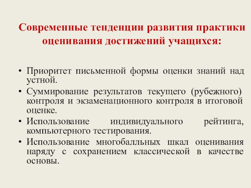 Слайд 11Современные тенденции развития практики оценивания достижений учащихся:
