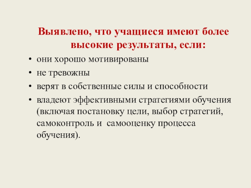 Слайд 57Выявлено, что учащиеся имеют более высокие результаты, если: