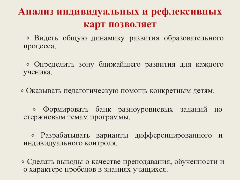 Слайд 38Анализ индивидуальных и рефлексивных карт позволяет
