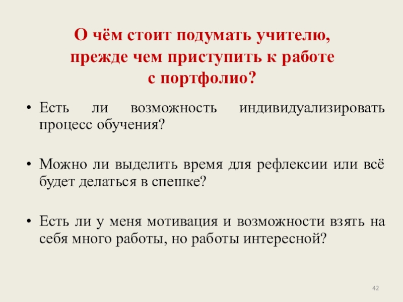Слайд 42О чём стоит подумать учителю,