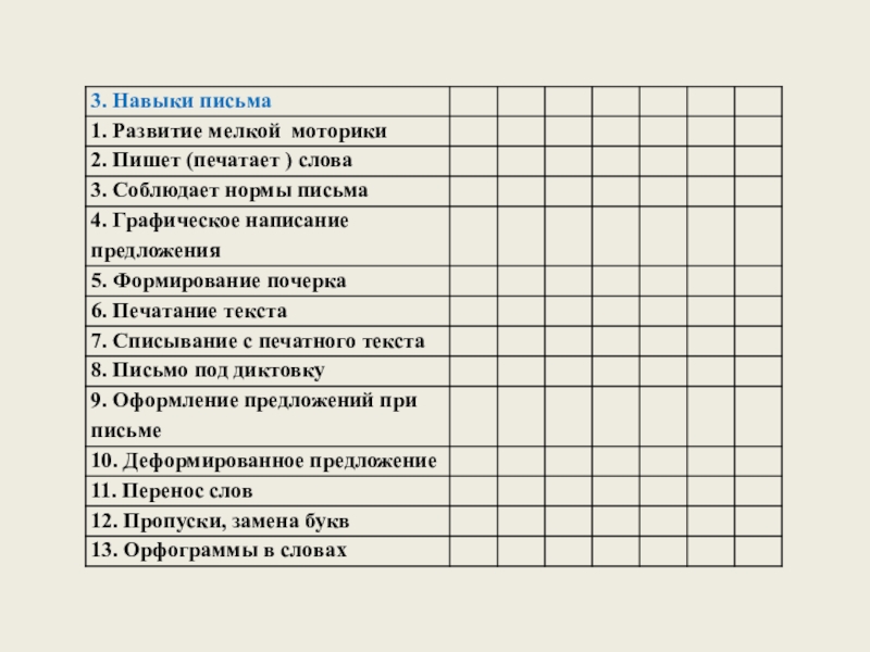 по всем формируемым на данном этапе навыкам.