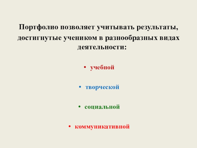 Слайд 45Портфолио позволяет учитывать результаты,