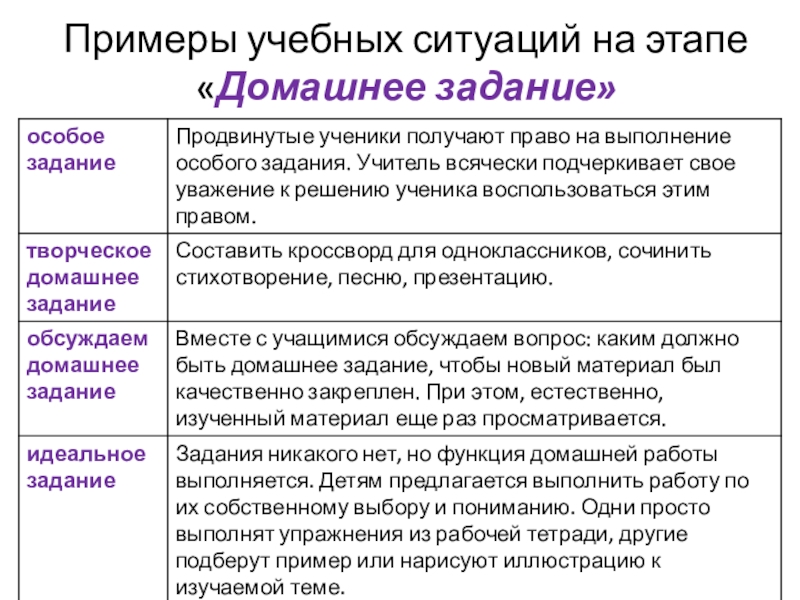 Слайд 11Примеры учебных ситуаций на этапе «Домашнее задание»