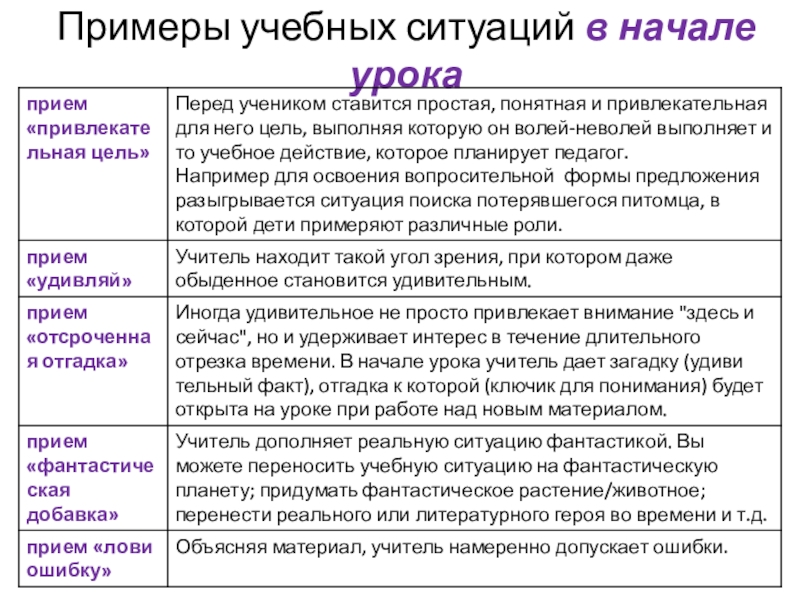 Слайд 9Примеры учебных ситуаций в начале урока