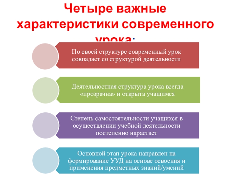 Слайд 13Четыре важные характеристики современного урока: