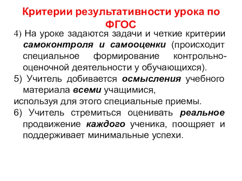 Слайд 34Критерии результативности урока по ФГОС