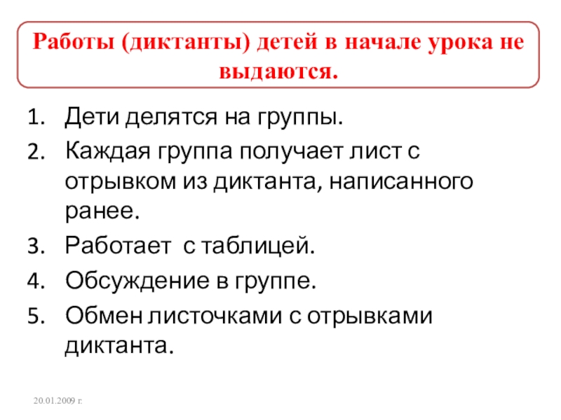 Работы (диктанты) детей в начале урока не выдаются.