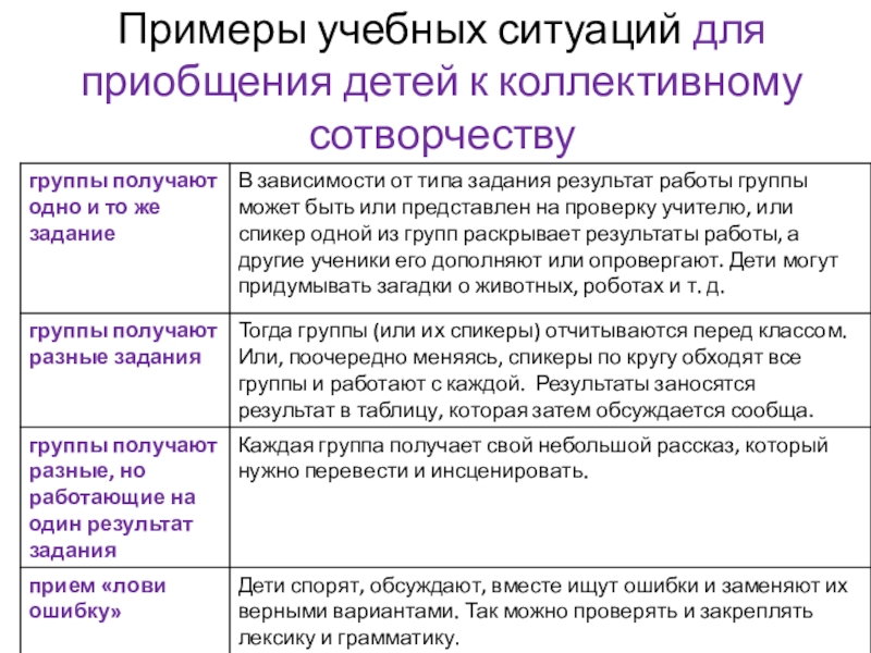 Примеры учебных ситуаций для приобщения детей к коллективному сотворчеству