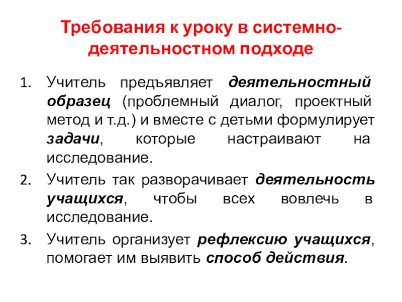 Слайд 4Требования к уроку в системно-деятельностном подходе