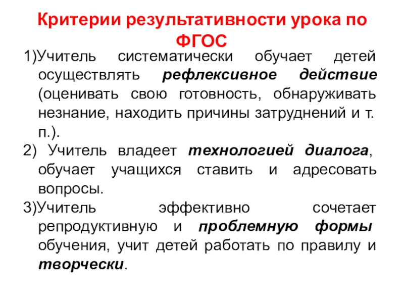 Слайд 33Критерии результативности урока по ФГОС