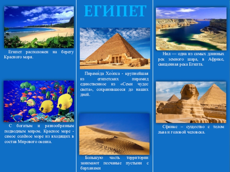 Нил — одна из самых длинных рек земного шара, в Африке, священная река Египта.