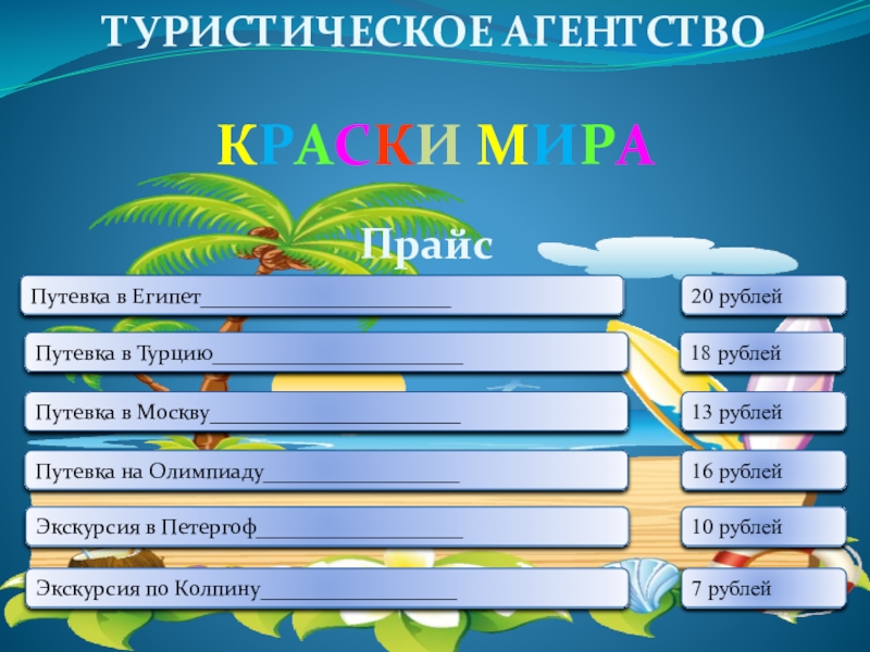 Слайд 12ТУРИСТИЧЕСКОЕ АГЕНТСТВО
