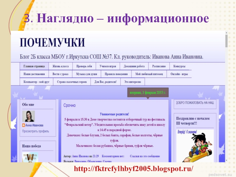 3. Наглядно – информационное http://fktrcfylhbyf2005.blogspot.ru/