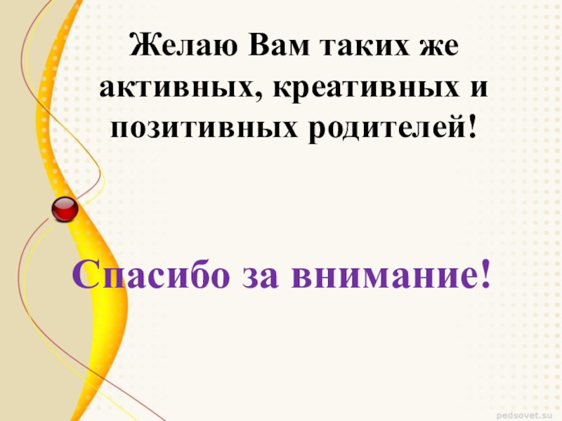 Спасибо за внимание!Желаю Вам таких же активных, креативных и позитивных родителей!