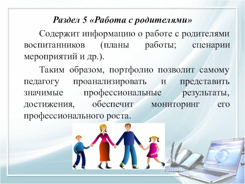 Слайд 32Раздел 5 «Работа с родителями»