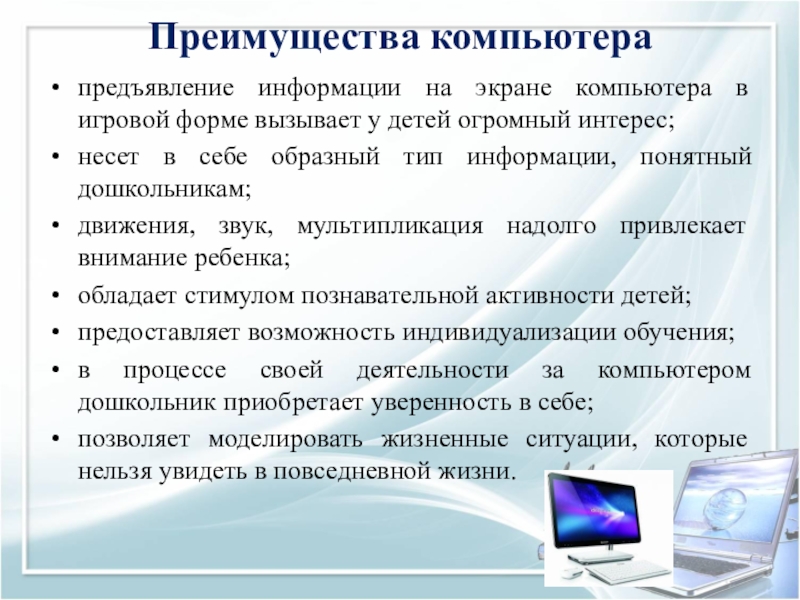 в процессе своей деятельности за компьютером дошкольник приобретает уверенность в себе;