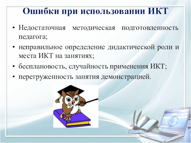Слайд 11Ошибки при использовании ИКТ