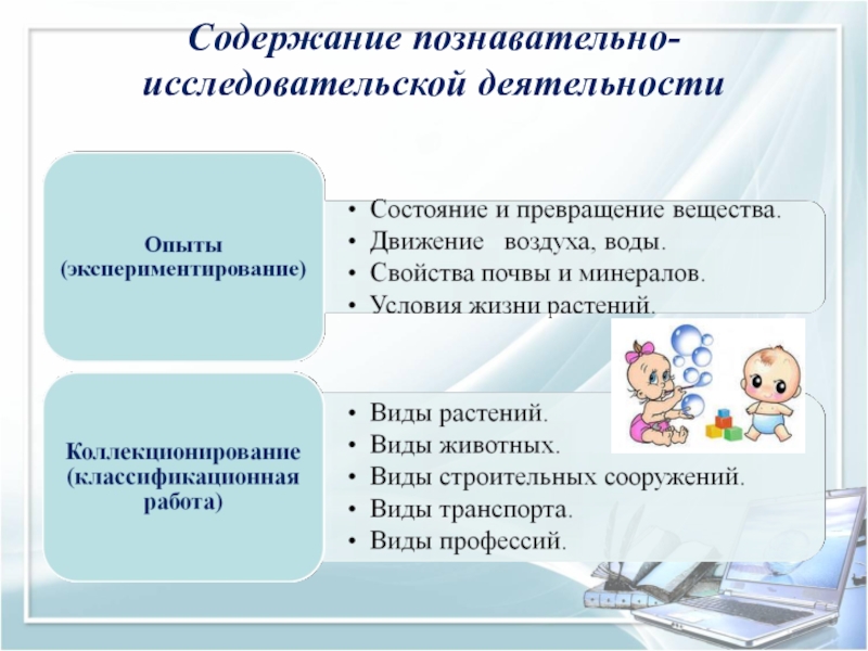 Слайд 4Содержание познавательно-исследовательской деятельности