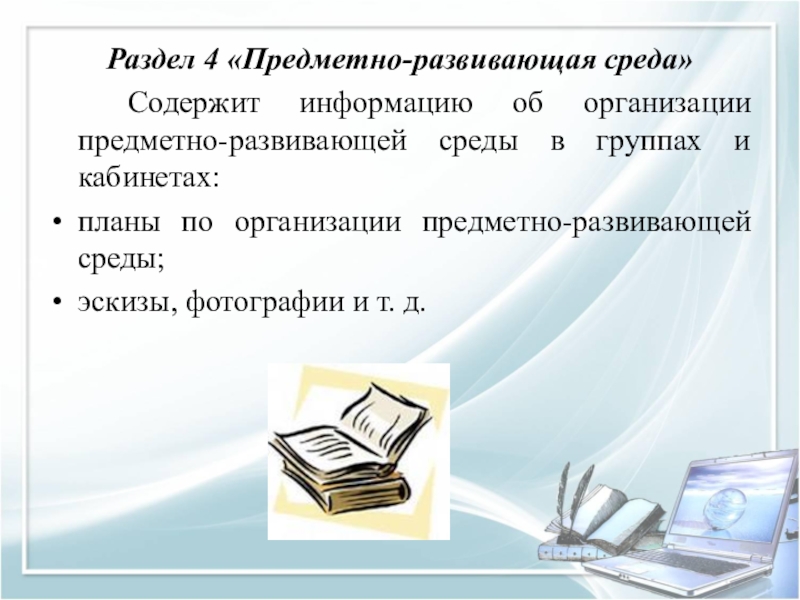Слайд 31Раздел 4 «Предметно-развивающая среда»