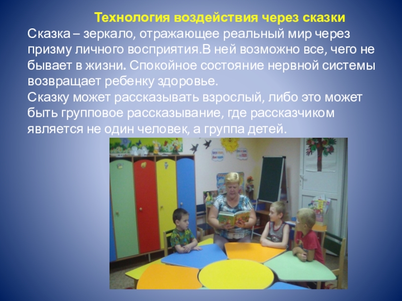 Сказка – зеркало, отражающее реальный мир через призму личного восприятия. В ней возможно все, чего не бывает в жизни. На занятиях по сказкотерапии мы с ребятами учимся составлять словесные образы.