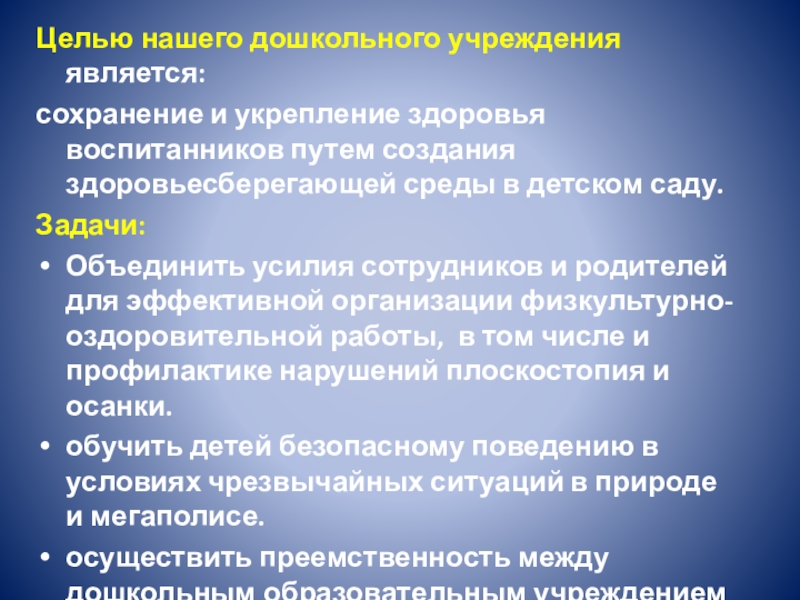 здоровья воспитанников. Поставленные цели успешно реализуются на практике.