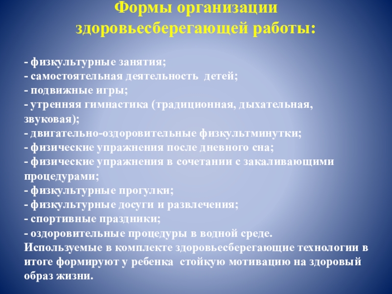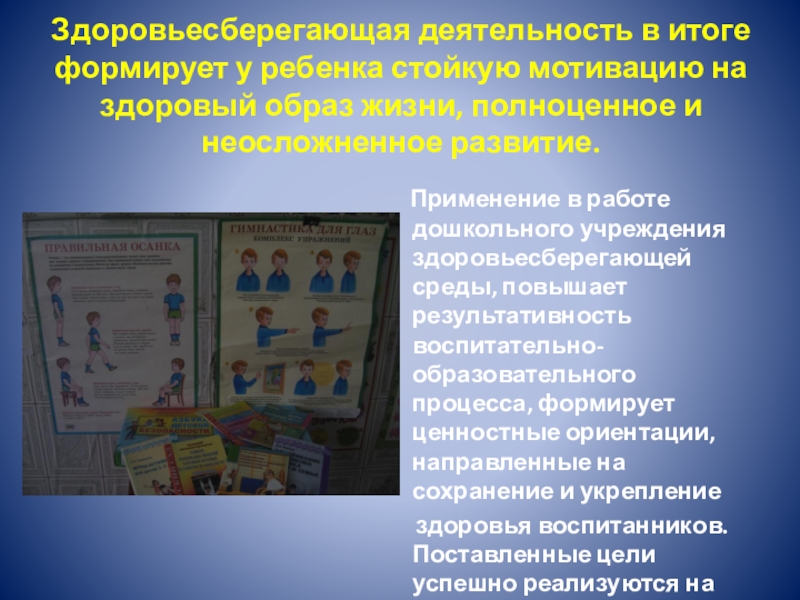 Применение в работе дошкольного учреждения здоровьесберегающей среды, повышает результативность воспитательно-образовательного процесса, формирует ценностные ориентации, направленные на сохранение и укрепление