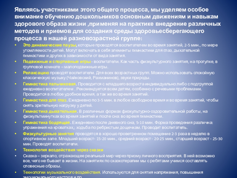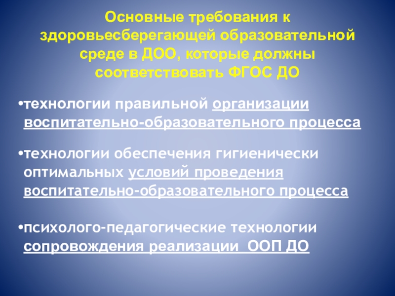 технологии обеспечения гигиенически оптимальных условий проведения воспитательно-образовательного процесса