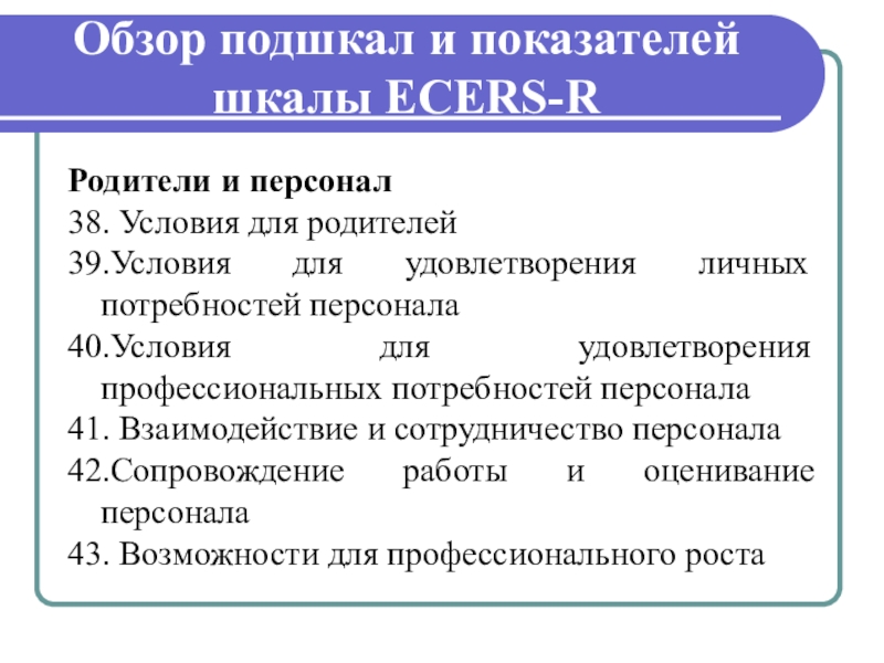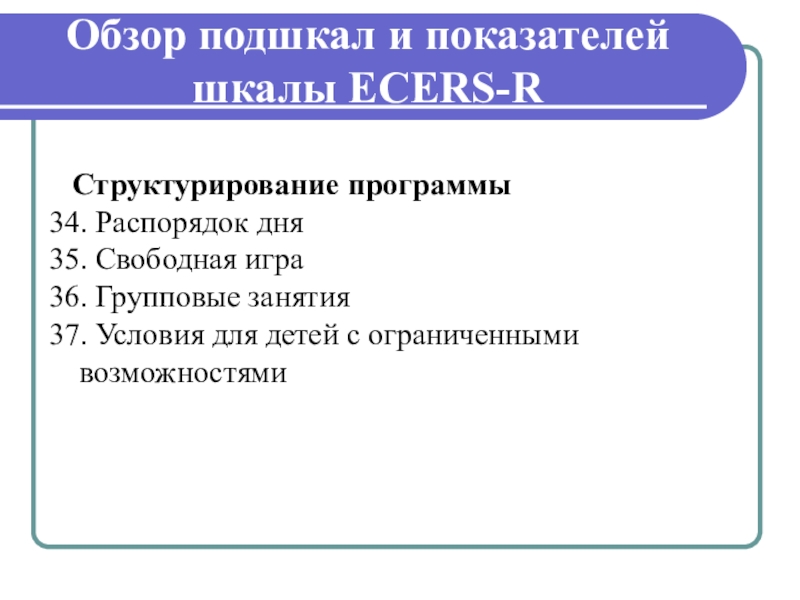 Слайд 8Обзор подшкал и показателей шкалы ECERS-R