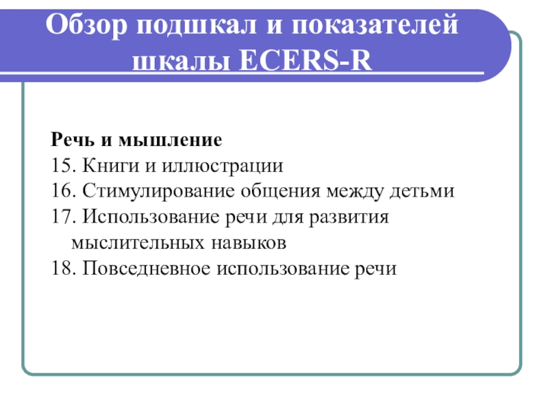 Слайд 13Обзор подшкал и показателей шкалы ECERS-R