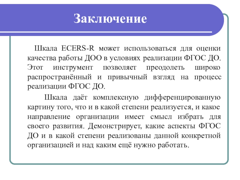 Шкала ECERS-R может использоваться для оценки качества работы ДОО
