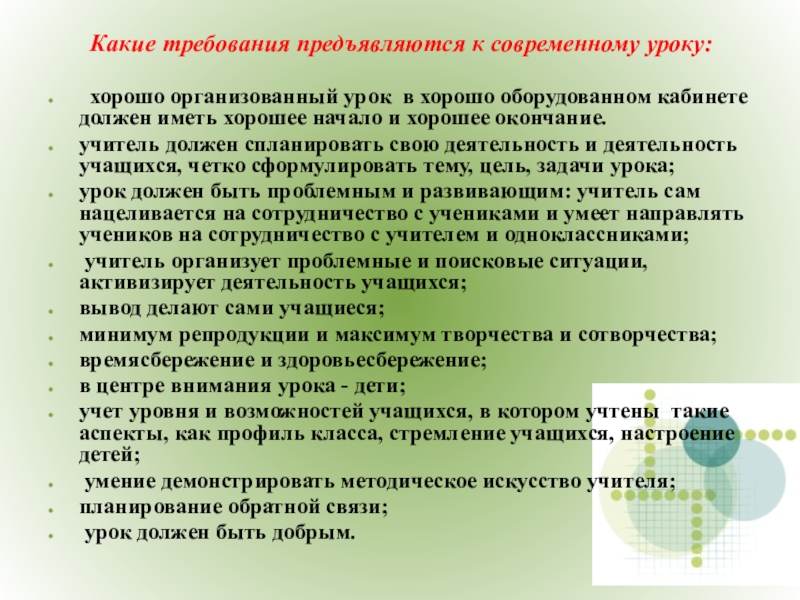 урок должен быть проблемным и развивающим: учитель сам нацеливается на сотрудничество с учениками и умеет направлять учеников на сотрудничество с учителем и одноклассниками;