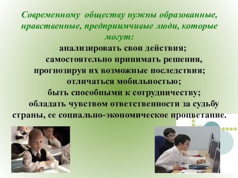 Современному обществу нужны образованные, нравственные, предприимчивые люди, которые могут: