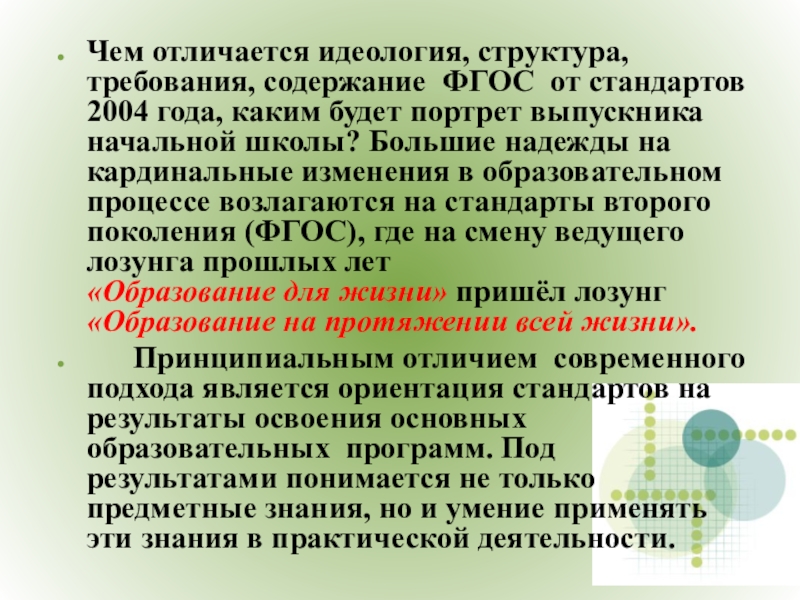 Чем отличается идеология, структура, требования, содержание ФГОС от стандартов 2004 года,