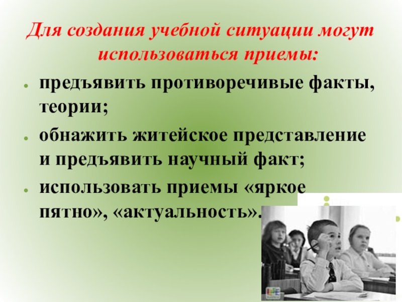Слайд 15Для создания учебной ситуации могут использоваться приемы:
