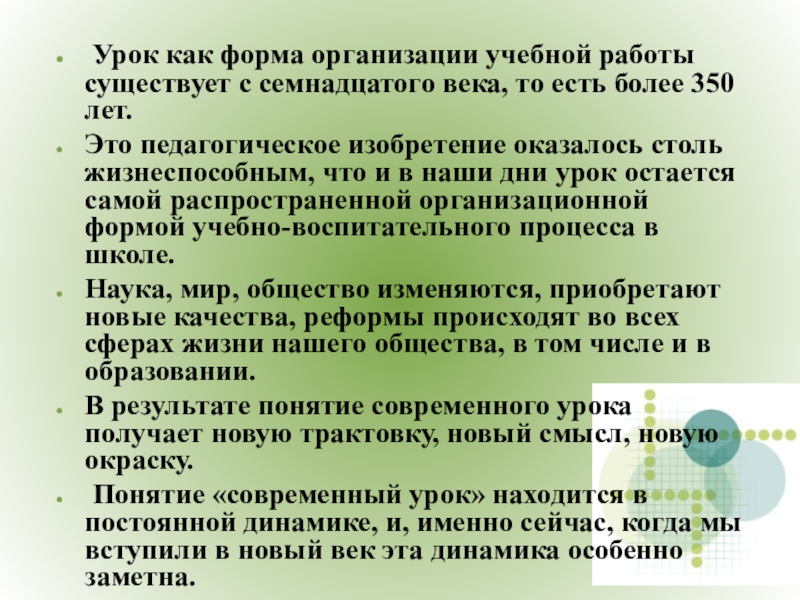 В результате понятие современного урока получает новую трактовку, новый смысл, новую окраску.