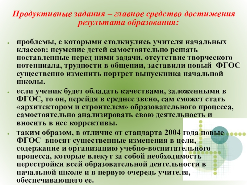 учителя начальных классов: неумение детей самостоятельно решать поставленные перед ними задачи, отсутствие творческого потенциала, трудности в общении, заставили новый ФГОС существенно изменить портрет выпускника начальной школы.
